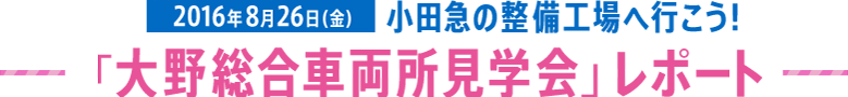 OPクレジットカード会員さまを対象にしたイベント「小田急の整備工場へ行こう! 大野総合車両所見学会2016夏」が8月26日(金)に、相模大野の大野総合車両所にて開催されました。昨年11月から引き続き、今回で2回目の開催となる見学会には、40組80名の募集に1,600名を超える会員さまからのご応募があり、見事ご当選された方たちに、車体上げ作業や各部品の修理の様子など普段見ることのできない整備風景を見ていただきました。