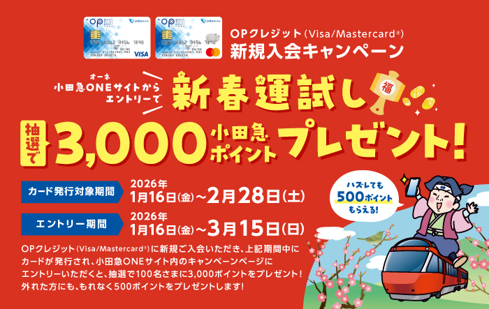 新春運試し!抽選で3,000ポイントプレゼント 「OPクレジット(Visa/Mastercard®)入会キャンペーン」 を実施中!!
