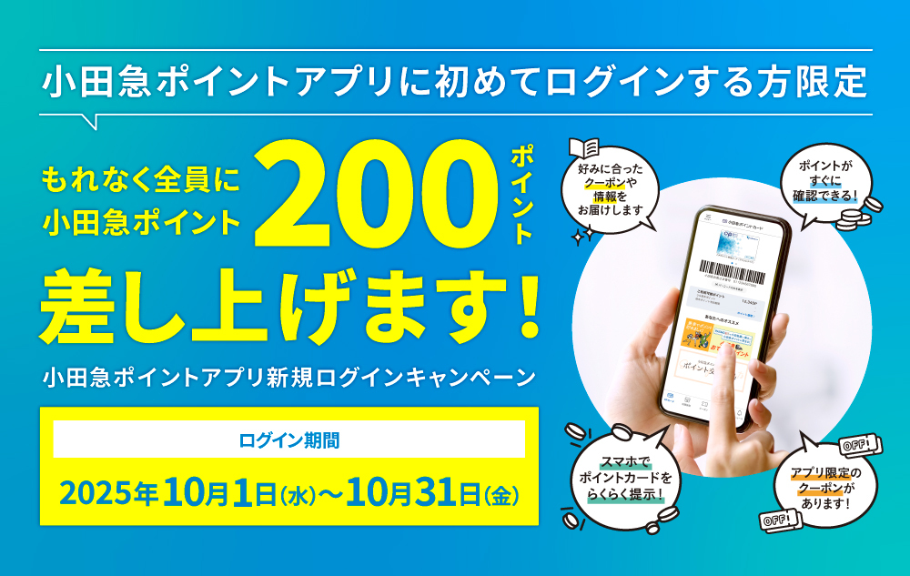 キャンペーン期間中、小田急ポイントアプリに初めてログインされた方全員に200ポイントをプレゼント