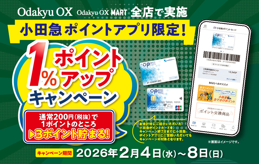 Odakyu OX、Odakyu OX MART全店で小田急ポイントアプリユーザー限定のおトクなキャンペーン「1%ポイントアップキャンペーン」を開催いたします!