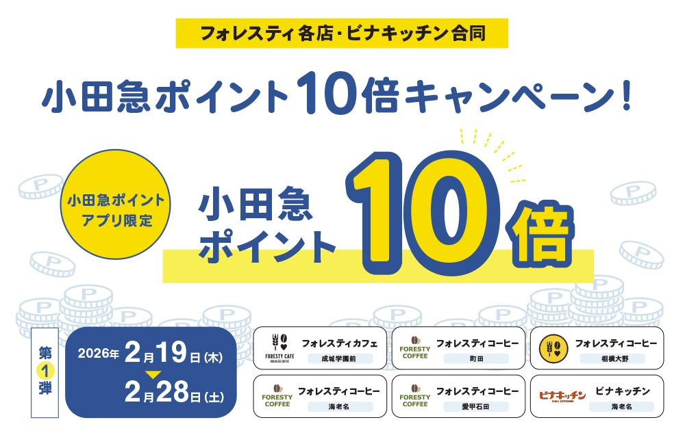 「フォレスティ各店・ビナキッチン合同」小田急ポイント10倍キャンペーン