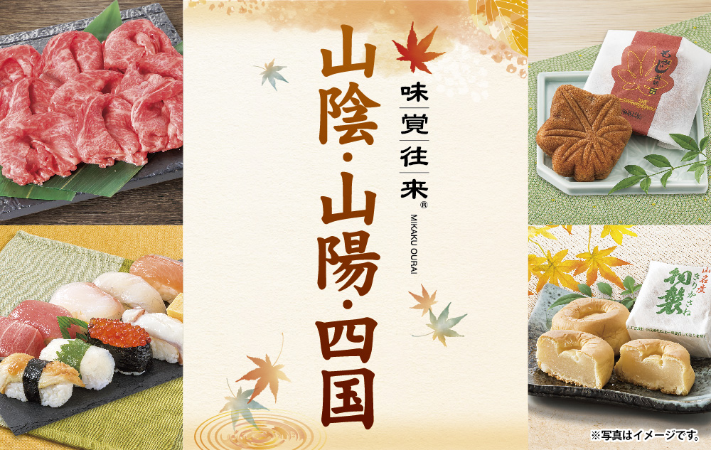 山陰・山陽・四国地方よりバイヤーが厳選した名産品や特産品、ご当地グルメなど、とっておきの商品をたっぷりと取り揃えます。