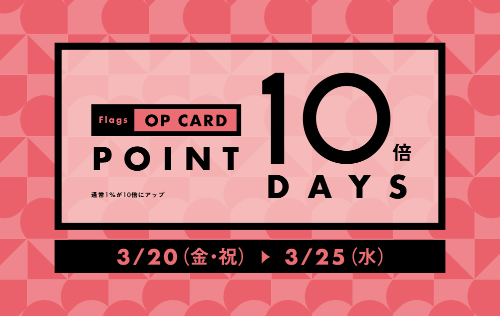 3/20(金)~3/25(水)の6日間、新宿フラッグスではOPカードのポイント付与率が通常の 1% ×10倍になります!