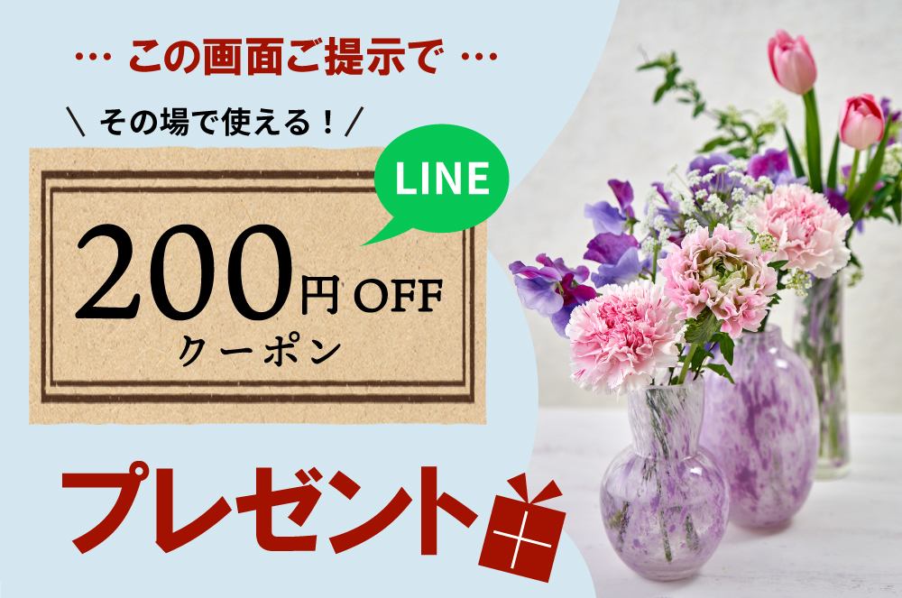 新年のご挨拶から始まり、1月12日(月・祝)の成人の日や1月31日(土)の愛妻の日など、1月は花贈りのチャンスが目白押しです。店頭でこの画面をご提示いただいたお客様に、その場で使える200円OFFのLINEクーポンをプレゼントいたします。