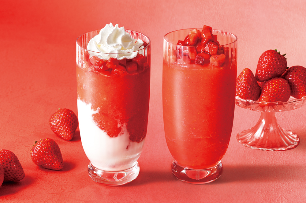苺本来の味わいと真っ赤な見た目をお楽しみいただけるリッチなドリンクです。