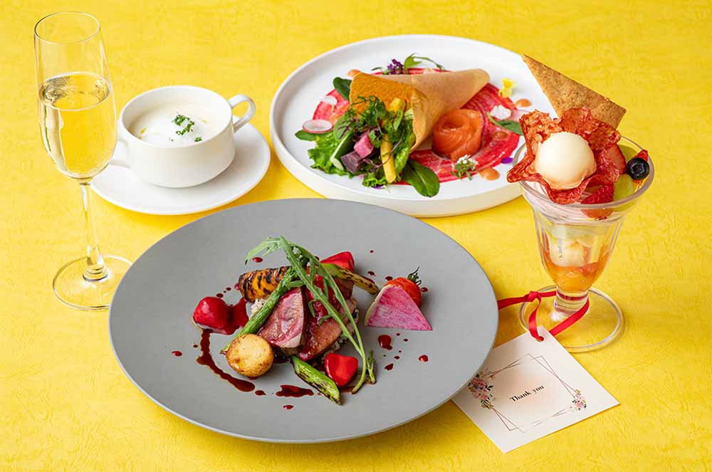 サザンタワーダイニングでは、「母の日」や「記念日」など、ご家族や大切な方へ日頃の感謝を伝えるお食事のひとときをより一層彩る、ありがとうのメッセージを添えたパフェ付きのスペシャルコース「Thanks(サンクス) ランチ&ディナー」を【5月限定】でご用意いたします。完全予約制につき、ご予約はお早めに!